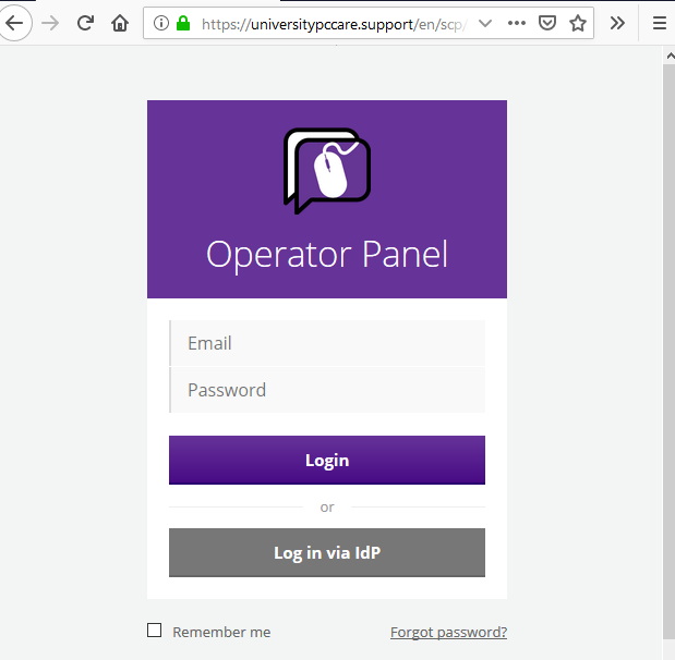 Navigate to https://universitypccare.support/scp. You will be presented with the login page.