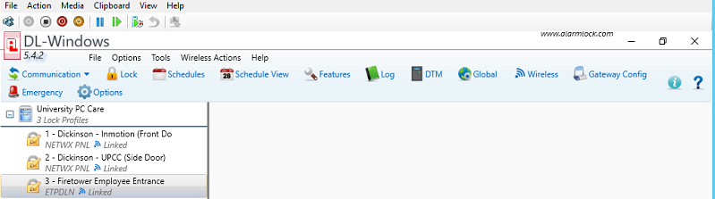 - In the main interface of DL-Windows, click on the lock that needs to have its configuration updated. If multiple locks need to be updated, follow these instructions for each lock as only one lock can be selected at a time for communication.